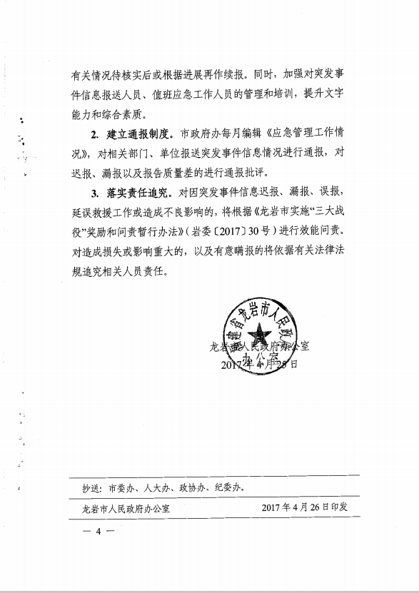 市政府辦關(guān)于切實(shí)抓好突發(fā)事件信息報(bào)送工作的通知(龍政辦【2017】100號)