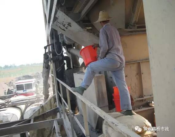 人工進(jìn)行固體溫拌劑的添加