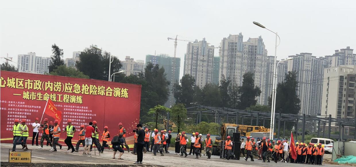 龍巖大道與工業(yè)路交叉口立交工程開展市政(內(nèi)澇)應(yīng)急搶險(xiǎn)綜合演練