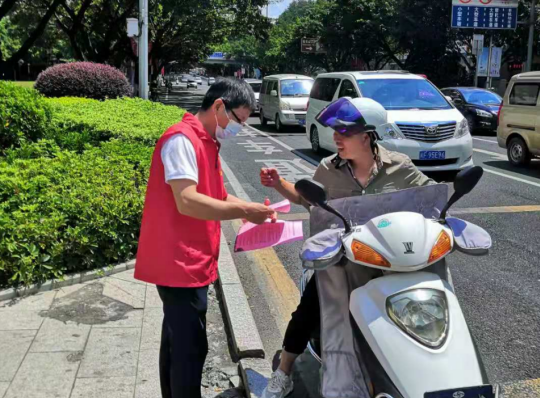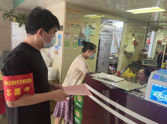 八月末,天氣炎熱,市政集團的志愿者們身著紅馬甲,不畏臟、不怕累,各司其職,分時段分批次在蓮新社區(qū)范圍內(nèi)開展創(chuàng)城活動,其中清潔崗的志愿者們帶著夾子、掃帚、垃圾袋等清掃工具,對街道路面的紙屑、塑料袋、煙頭等生活垃圾進行清掃,將亂停亂放的自行車整齊的排列在停車位上,使得街道整潔一新。宣傳崗的志愿者們走進商鋪,發(fā)放文明宣傳標(biāo)語,動員商鋪店主一起,注意門前三包,在平時營業(yè)工作中,遇到不文明行為時,進行及時規(guī)勸,讓市民自覺遵守,規(guī)范自身行為,積極踐行“共創(chuàng)共享”的創(chuàng)城理念,共同為創(chuàng)建文明城市出一份力。交通崗的志愿者們通過積極引導(dǎo)道路交通,向過往行人科普創(chuàng)城溫馨小知識,加強城市文明建設(shè)。