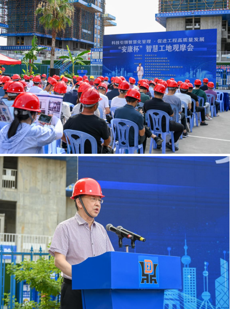 為推動我市房屋市政工程智慧工地建設(shè),促進(jìn)建筑施工企業(yè)質(zhì)量安全管理標(biāo)準(zhǔn)化、信息化、智能化發(fā)展,7月20號上午,由市住建局和城發(fā)集團(tuán)主辦,市政集團(tuán)及福建九鼎集團(tuán)共同承辦的全市智慧工地觀摩會在龍欣小區(qū)安置房二期Ⅱ標(biāo)段項目舉辦,市住建局二級調(diào)研員王健蒞臨觀摩會致辭,市住建局、城發(fā)集團(tuán)及所屬企業(yè)相關(guān)工程技術(shù)人員約100人參加。觀摩會還吸引了來自龍巖市建筑業(yè)協(xié)會、龍巖市工程建設(shè)質(zhì)量安全管理協(xié)會、福建船政交通職業(yè)學(xué)院等有關(guān)專家到場指導(dǎo)。