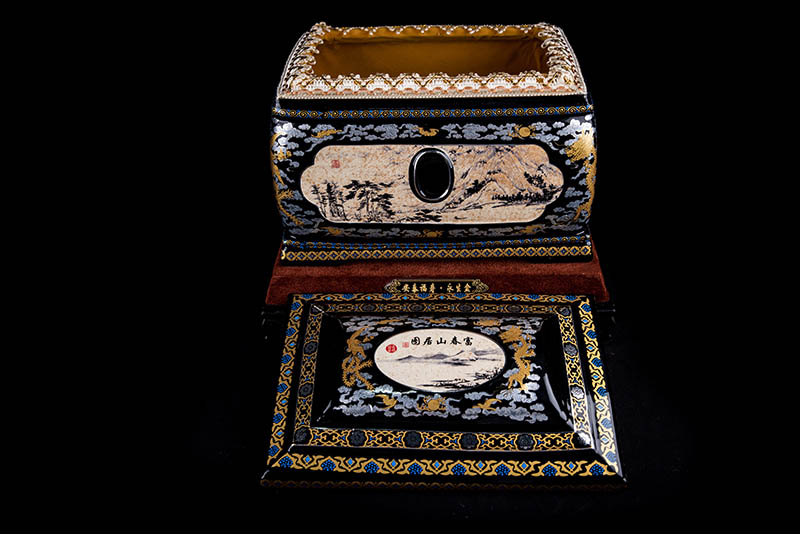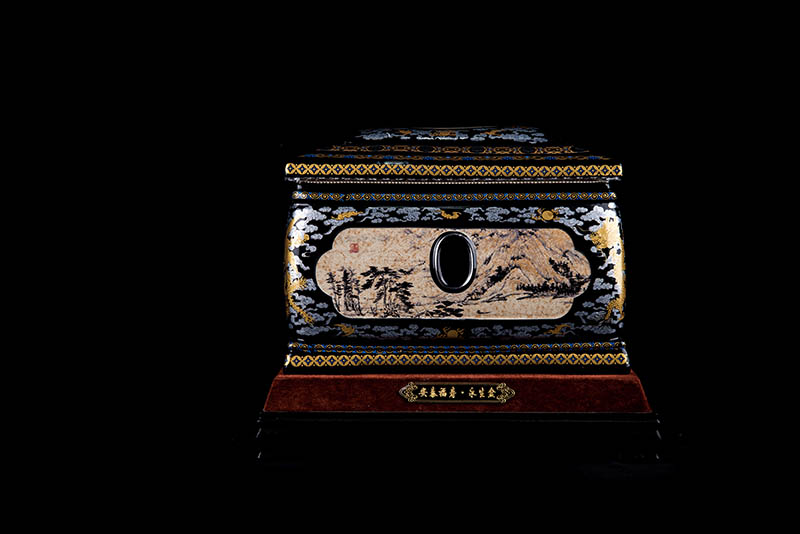 景德鎮安泰福壽陶瓷有限公司,永生盒系列之《富春山居圖》:本款產(chǎn)品是與浙江省杭州市桐廬殯儀館共同開(kāi)發(fā)設計,采用中國十大傳世名畫(huà)之一《富春山居圖》作為主要背景,配之以“祥云”、“龍鳳”,“蝙蝠”加以點(diǎn)綴,圖案以浙江省富春江作為背景,80%為桐廬境內富春江景色,富春山居圖被譽(yù)為“畫(huà)中之蘭亭”,對于桐廬殯儀館而言,這更是一種家鄉情懷,表達了對于藝術(shù)不懈的追求,也是桐廬人民引以為傲的佳品。尺寸:340x230x250mm