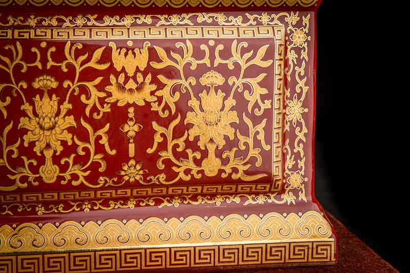 這款【吉祥如意】系列產(chǎn)品,目前有幾種顏色釉系列,黃、藍、紅、以及黑。這款產(chǎn)品運用中國古代傳統的吉祥紋飾—“纏枝蓮”?!袄p枝蓮”常運用在陶瓷作為點(diǎn)綴,因其結構連綿不斷,故又具“生生不息”之意,同樣保后代代代繁榮。尺寸:300x230x210mm